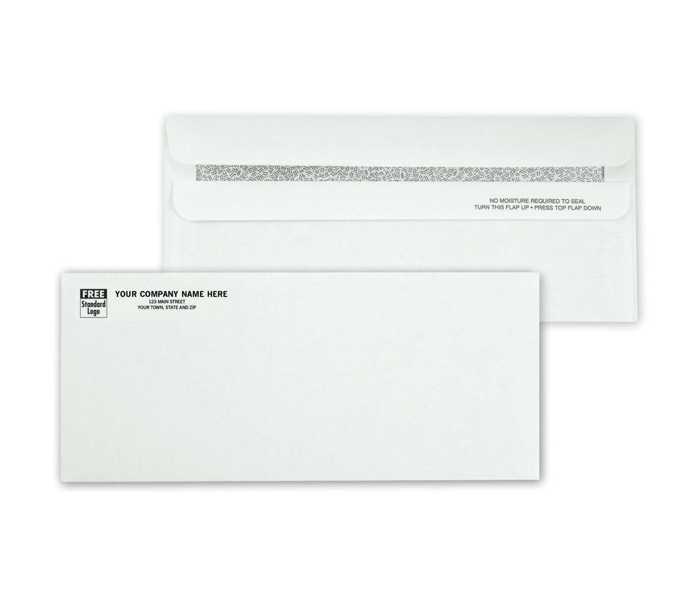 Additional customization options include imprinting your custom logo.; ATTENTION: Remove the "P" block & lines if postal indicia is not being used.; Quality construction stands up in the mail.; Printed lining to protect your privacy.; Free personalization includes your business imprint plus choice of ink color, typeface & standard business logo.; These affordable business envelopes printed with your name & address send a great impression!; Envelopes feature our handy self-seal flap to save mailing time!; Choice of 1 or 2 ink colors QUAL:LAYOUT A HAS PE BLOCK. USE LAYOUT B FOR CUSTOM LOGO OR LARGER IMPRINT.; LAYOUT A HAS PE BLOCK. USE LAYOUT B FOR CUSTOM LOGO OR LARGER IMPRINT. CALL:Lowest Price CALL:Postal endorsements available FREE!