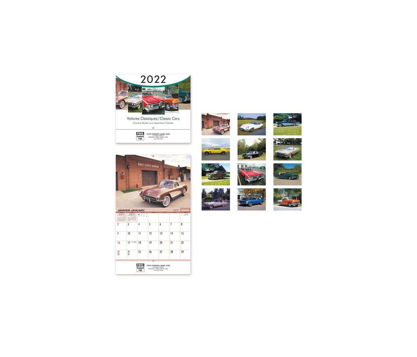 Classic Cars Wall Calendar - Bilingual
