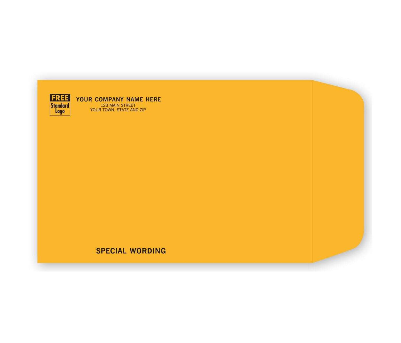 ATTENTION: Remove the "P" block & lines if postal indicia is not being used.; Secure seal! Gummed flap seals securely when moistened.; Open end construction: Hold contents safely with open end construction.; Secure all your important documents! Sturdy Mailing Envelopes are ideal for sending reports, plans, photos, certificates, catalogs and more!; Quality paper stock! 28# kraft stock.; Choice of 1 or 2 ink colors