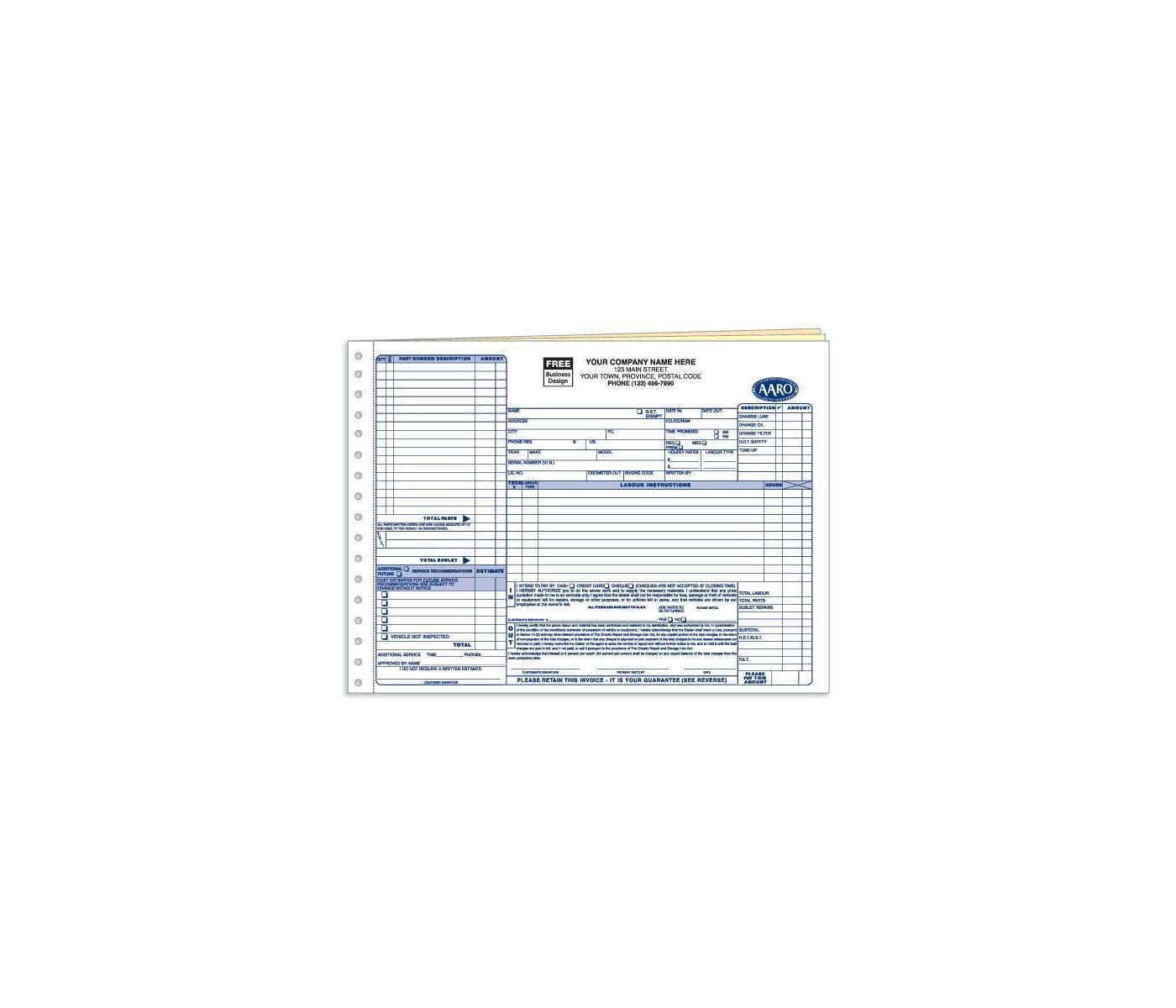 Last copy is manila tag stock; We've got the tools you need to help your automotive repair business succeed! Our carbonless manual Repair Invoices are pre-lined with pre-printed headings making them well-organized and easy to read... features your customers are sure to appreciate. QUAL:* NO CHOICE OF INK COLOURS - BLACK ONLY
