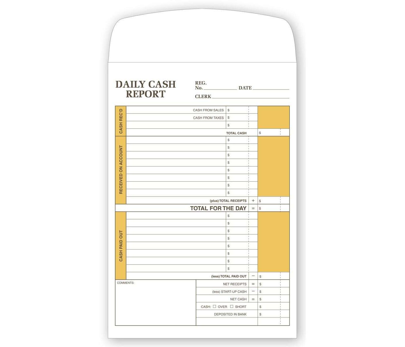 Keep track of daily cash activities! Durable envelopes have preprinted columns to list and balance transactions, plus room inside for receipts, register tapes and coupons.; Secure your cash. Gummed flap seals securely when moistened.; 28# white wove stock. CALL:Ships in 24-72 hrs. CALL:Ships in 24-72 hrs. CALL:Ships in 24-72 hrs.