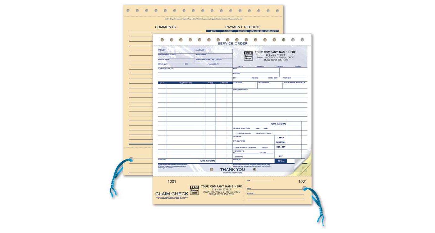 The one for those big jobs; Service Orders help you stay organized! Our forms have ample room to list ALL the details of services provided. Claim Cheques are printed on thick tag stock for added durability and include plastic-covered wire fastener.