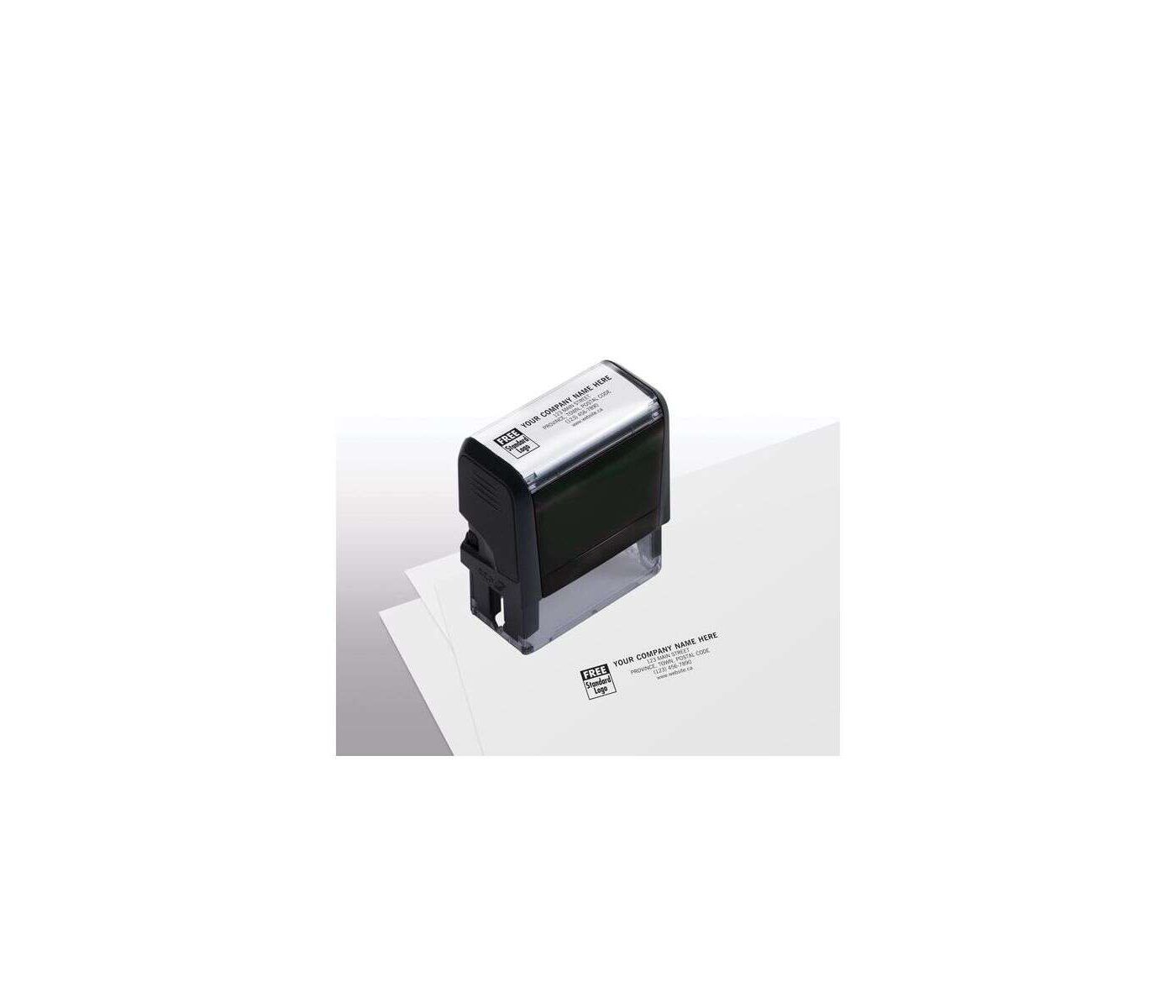 Efficient and Easy to use! Re-inks with each impression - excellent for rapid, high-volume use.; Save time and put an end to repetitive writing! Designed for rapid, high-frequency use that will deliver thousands of impressions. No messy ink pads.; Free Personalization: Enter your own text to customize this stamp.; Impression area measures: 15/16" x 2 7/16".; Ink colours: black, blue or red.; Make a statement when you customize our 5-line self-inking stamp with a monogram or standard logo. Personalize it more with choice of ink colour, and typestyle.; Lines of text. This stamp offers 5 lines of text. QUAL:INK COLOUR MUST MATCH MATERIALCOLOUR CHOSEN