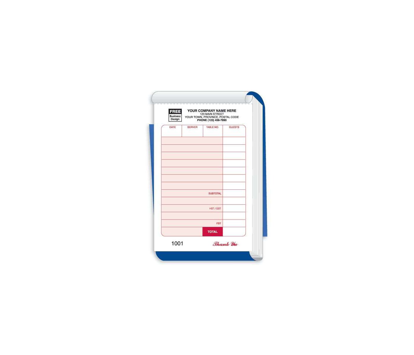 Default number will begin at 0001 unless otherwise specified.; Writing up orders just got easier with our compact, economical Guest Check Books! Send one copy to the kitchen, keep one copy for the customer.; Construction = 16# white, 15# canary.; Padded in Books of 50 sets with wrap around cover.