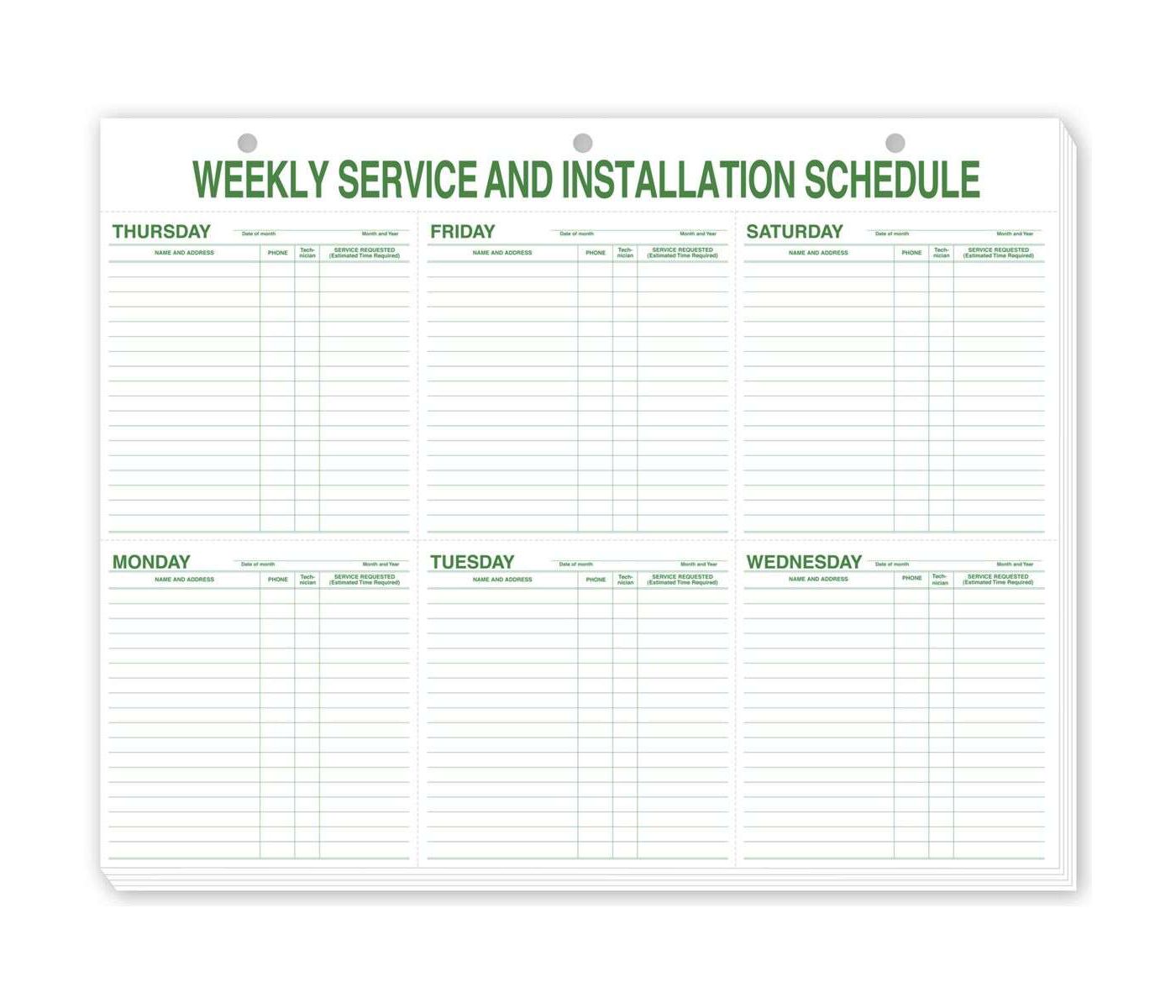 Weekly Service & Installation Schedule Pad, Hole Punch